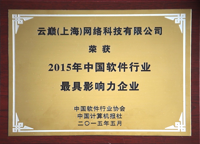 2015年荣获由中国软件行业协会、中国计算机报颁发的“中国软件行业最具影响力企业”