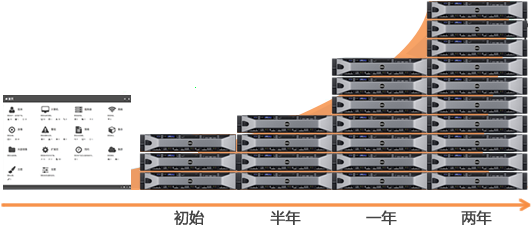 Liberty云融合基础架构,将领先的互联网公司Web-Scale架构众多优势和经济性结合在一起,让企业能够用最经济的方式构建私有云平台。Liberty的部署可以实现理论上无上限的线性扩展。当用户IT基础资源不足时候,只需要对应增加新的节点,并接入电源和网络,所有节点加入集群并融合的工作都将由系统自动完成。